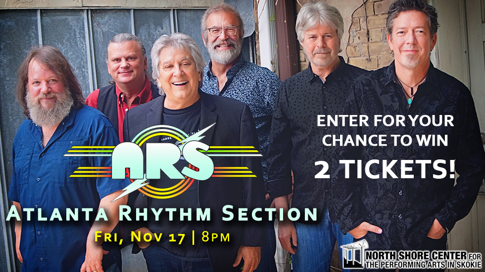 PRIZES. Five (5) winners will be awarded with two (2) tickets Atlanta Rhythm Section at the North Shore Center for The Performing Arts in Skokie on November 17th at 8:00pm h. Winners will first be notified via the email address on their entry, followed up by a phone call to the phone number listed on their entry. Odds of winning will be determined by the total number of correct eligible entries. Once notified, the winner will have one (1) week to claim their Prize. If a winner fails to claim their Prize, it will result in the forfeiture of the Prize and a new drawing may be held from the remaining eligible entries at the discretion of ‘87.7 MeTVFM’. Prize Winners must possess a valid picture ID, fill out all full release form and W-9 form to claim their Prize.