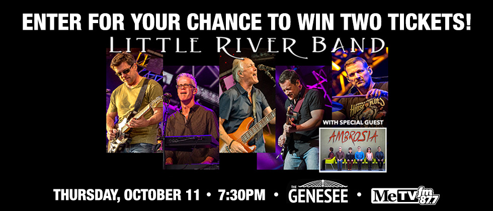 PRIZES. Five (5) winners will be awarded with two (2) tickets to see Little River Band with special guest Ambrosia at the Genesee Theatre on Thursday, October 11, 2018, at 7:30 PM CDT, valued at $64. Winners will first be notified via the email address on their entry, followed up by a phone call to the phone number listed on their entry. Odds of winning will be determined by the total number of correct eligible entries. Once notified, the winner will have five (5) business days to claim their Prize. If a winner fails to claim their Prize, it will result in the forfeiture of the Prize and a new drawing may be held from the remaining eligible entries at the discretion of ‘87.7 MeTVFM’. Prize Winners must possess a valid picture ID to claim their Prize.