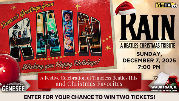 WINNER(S) LIST: If you wish to receive the names of Sweepstakes Prize Winners, you can visit the Sweepstakes Winners’ Page at metv.fm, or send a self-addressed, stamped envelope to Rain Beatles Christmas Tribute Winner’s List, 26 N. Halsted, Chicago, IL 60661. Sponsor must receive any request for the Winner’s name, no later than 11/10/25.