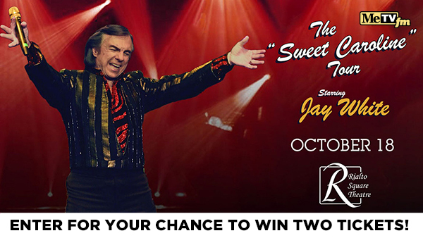 PRIZES. Five (5) PRIZES will be awarded. Prize is two (2) tickets to see Sweet Caroline Tour with Jay White at Rialto Square Theatre, 102 N. Chicago St., Joliet, IL 60432-4211 on October 18, 2025, with an approximate retail value of $70USD. Approximate retail value of all prizes to be awarded is $350USD. Prizes may not be exchanged or redeemed for cash, sold, or traded.